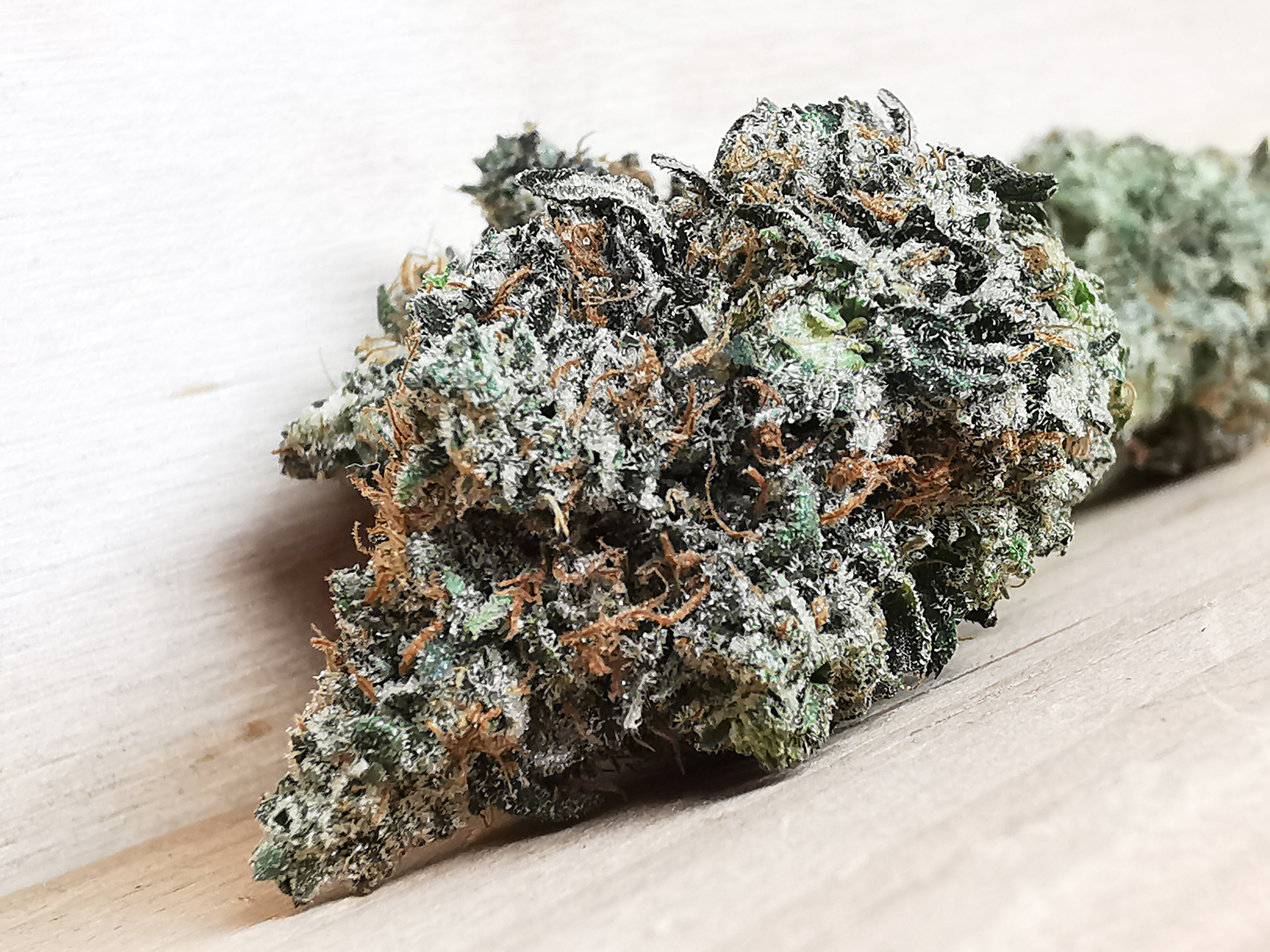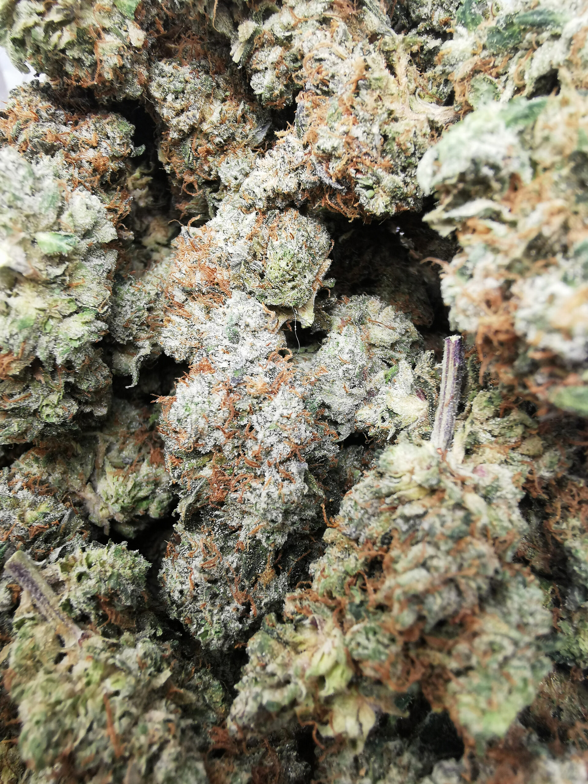 The buds are dense, well-structured, and resin-packed, with that classic west coast look: deep green hues, orange pistils, and shimmering frost from top to stem. With a THC level around 27%, expect a powerful, relaxing high that’s smooth, flavorful, and long-lasting.