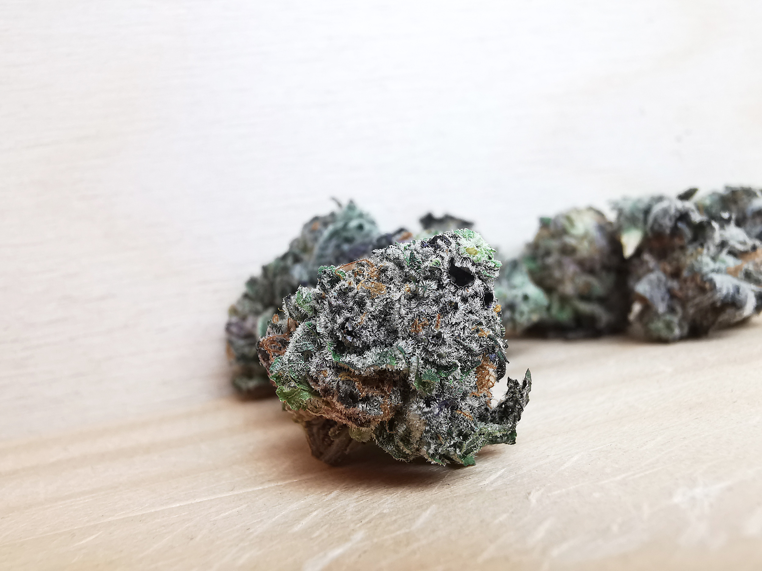 - Light green with hints of orange pistils and visible frost