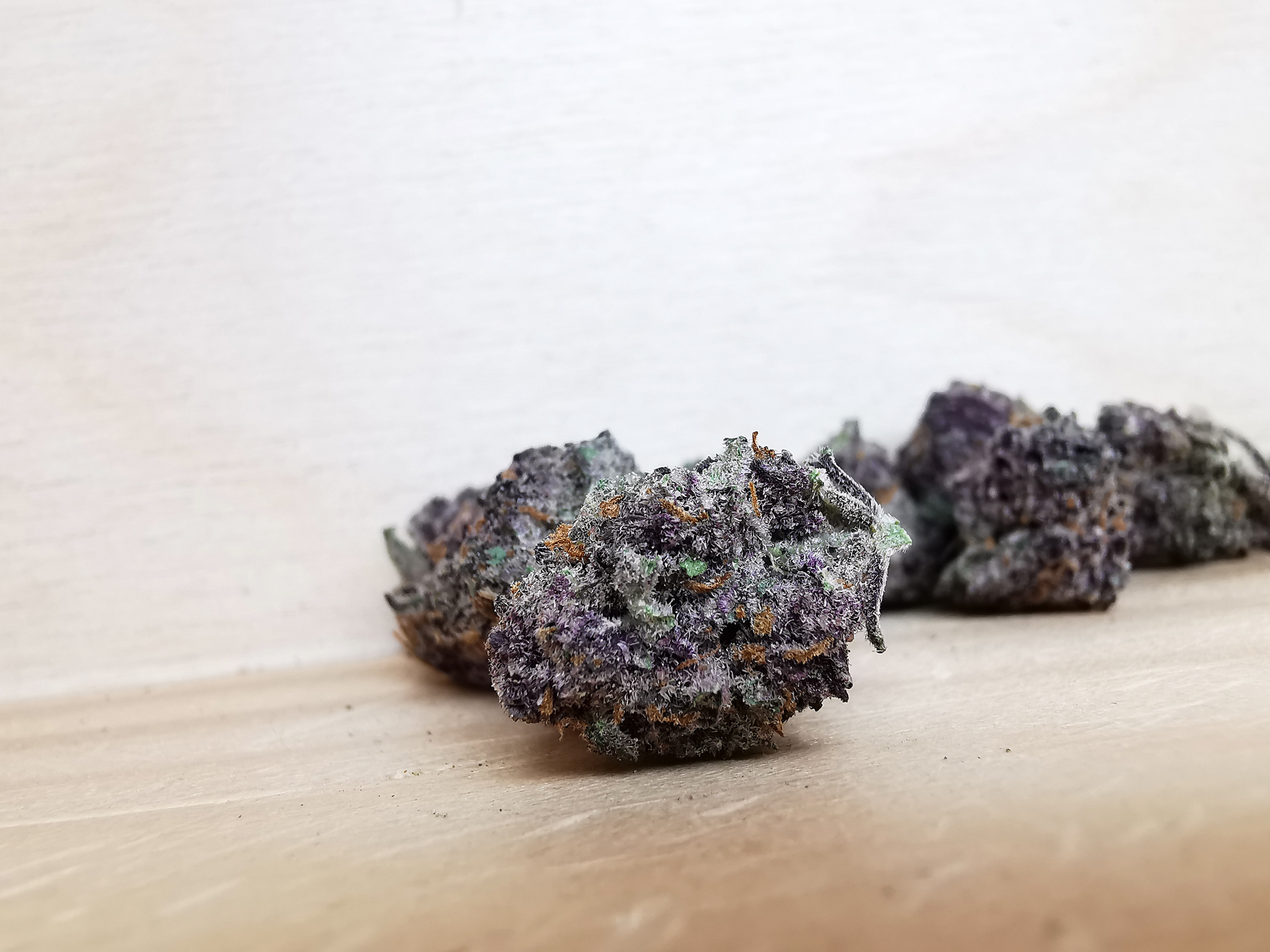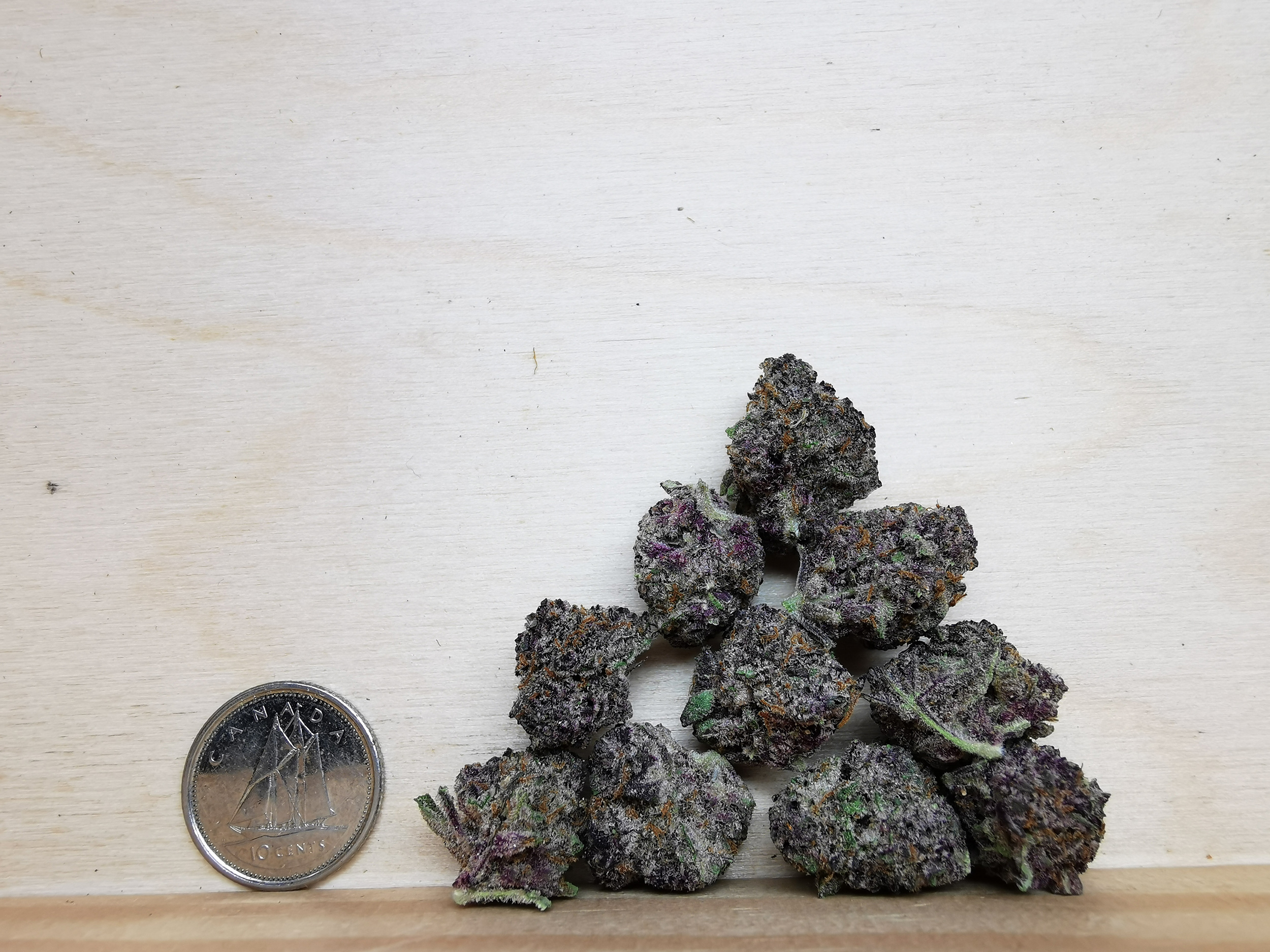 These small nuggets come from a quad-grade harvest, meaning you’re still getting the full flavor and potency profile — without paying for oversized bud aesthetics. Break one open and you’ll notice ripe grape, berry candy, and light earthy gas that carry beautifully into the smoke.