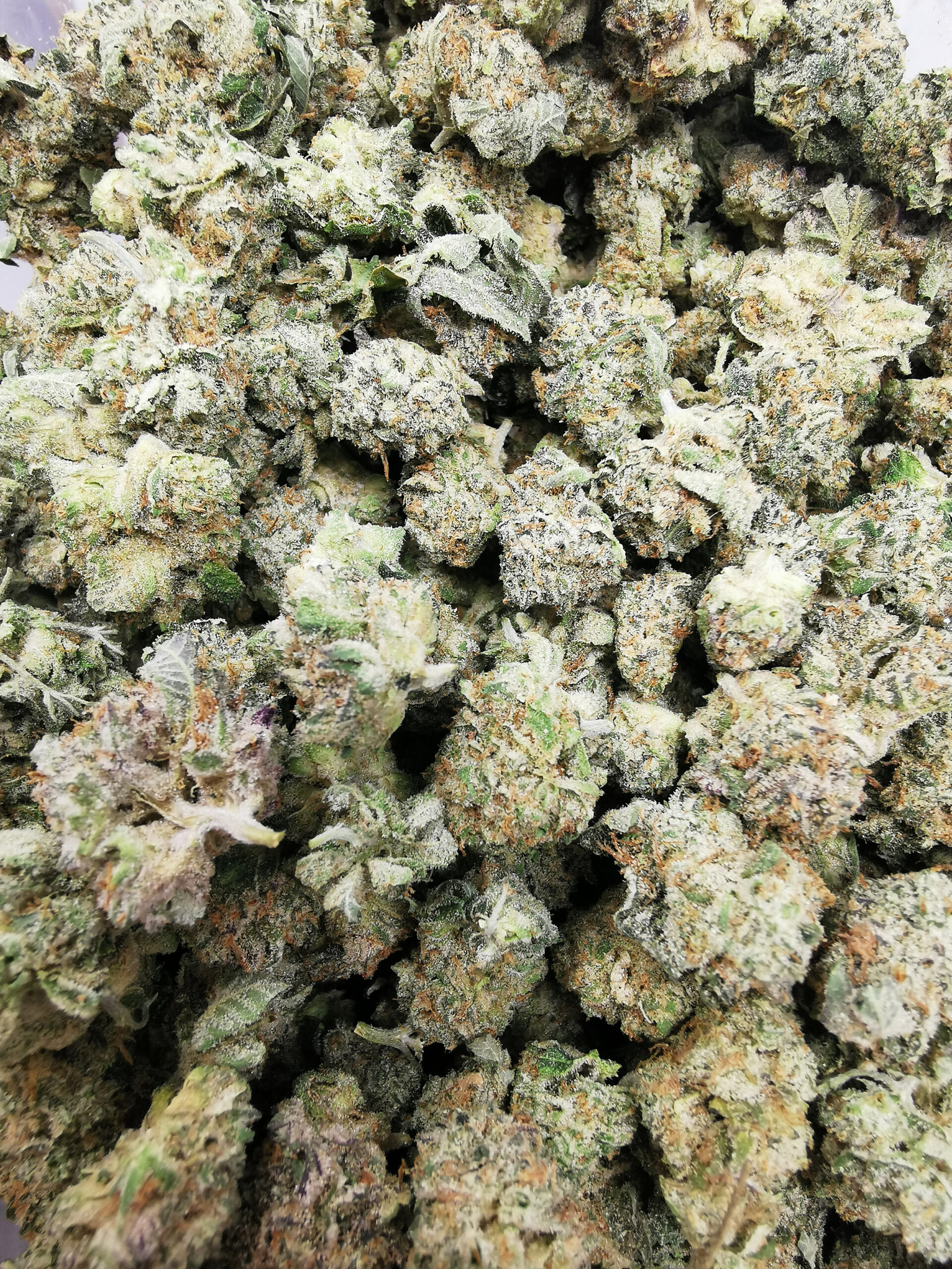 This indica-leaning hybrid offers a strong, well-rounded high that starts with an uplifted, easygoing head buzz before settling into a deeper body calm. It’s relaxing without feeling too flat, making it a nice choice for evening sessions or anytime you want something flavorful with a heavier finish. Potency is solid here, with the kind of longer-lasting effect you’d expect from a true AAAA.
