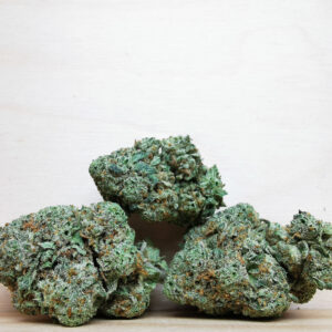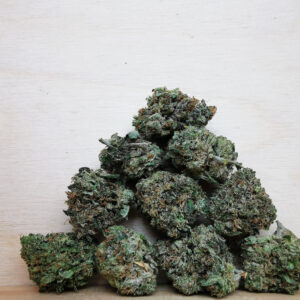 Death Bubba is an indica dominant hybrid (70% indica/30% sativa) strain created as a descendant of the hugely popular Bubba Kush strain. This dank bud boasts an insanely high THC level that ranges between 25-27% and effects that can end in an almost death-like sleep. Almost immediately after smoking, you’ll feel a wave of rushing focused energy wash over you that leaves you uplifted and motivated with tendencies towards having psychoactive experiences. As the high continues, you’ll be eased into a state of utter relaxation with deep introspection and spaciness that can cause you to become distant in social situations. Upon the comedown from the high, Death Bubba pulls you into a deep and peaceful undisturbed sleep that lasts for hours on end, giving you the appearance of being unwakeable. Death Bubba has an aroma of musky earthy pine and a taste of spicy lemon pine with a hint of pungent earth upon exhale. This bud has medium-sized dark forest green nugs with rich purple undertones and a spattering of fiery orange hairs. Each nug is completely covered with dark olive green leaves that are almost furry and have a thick layer of frosty sandy white trichomes.