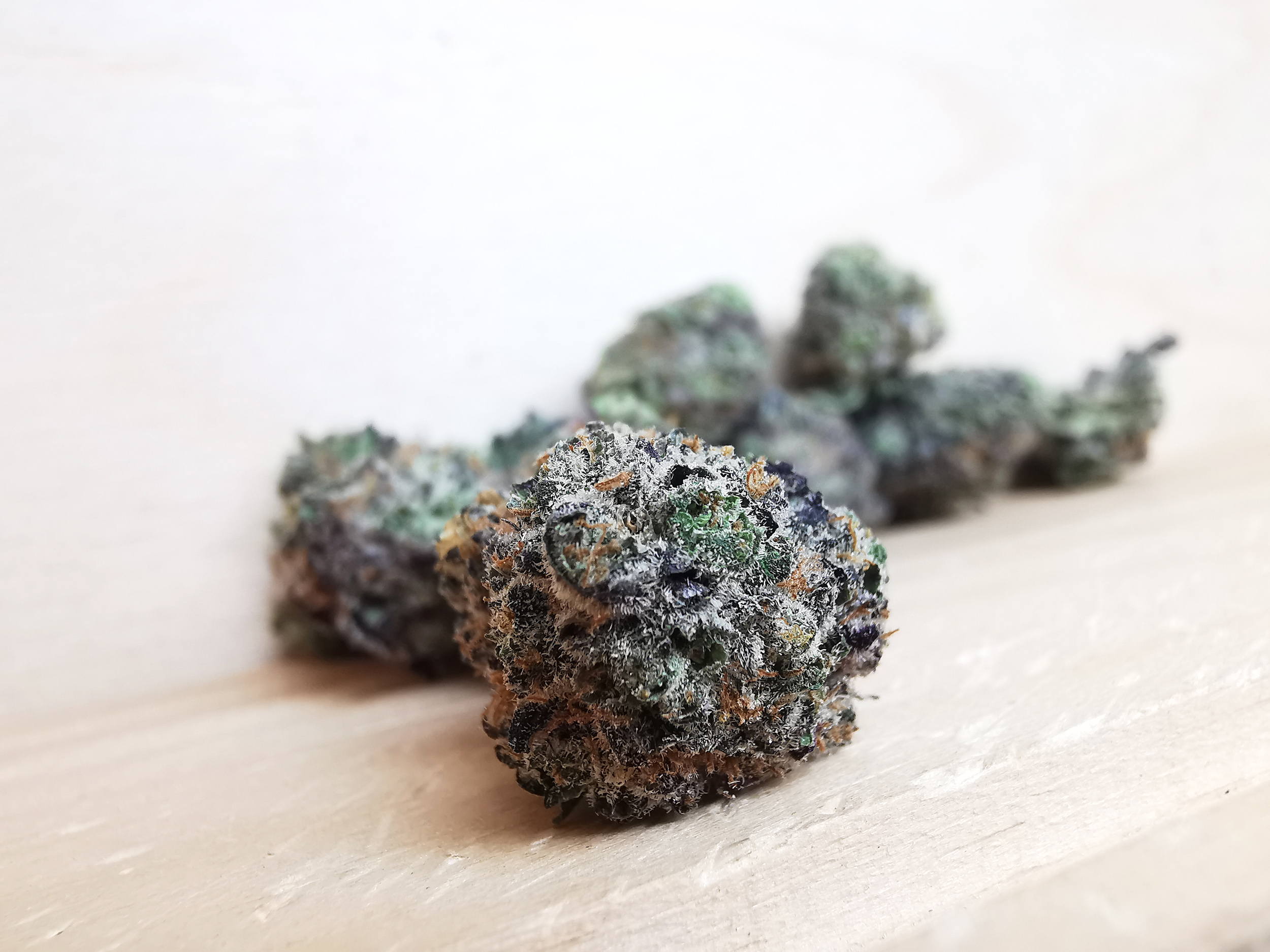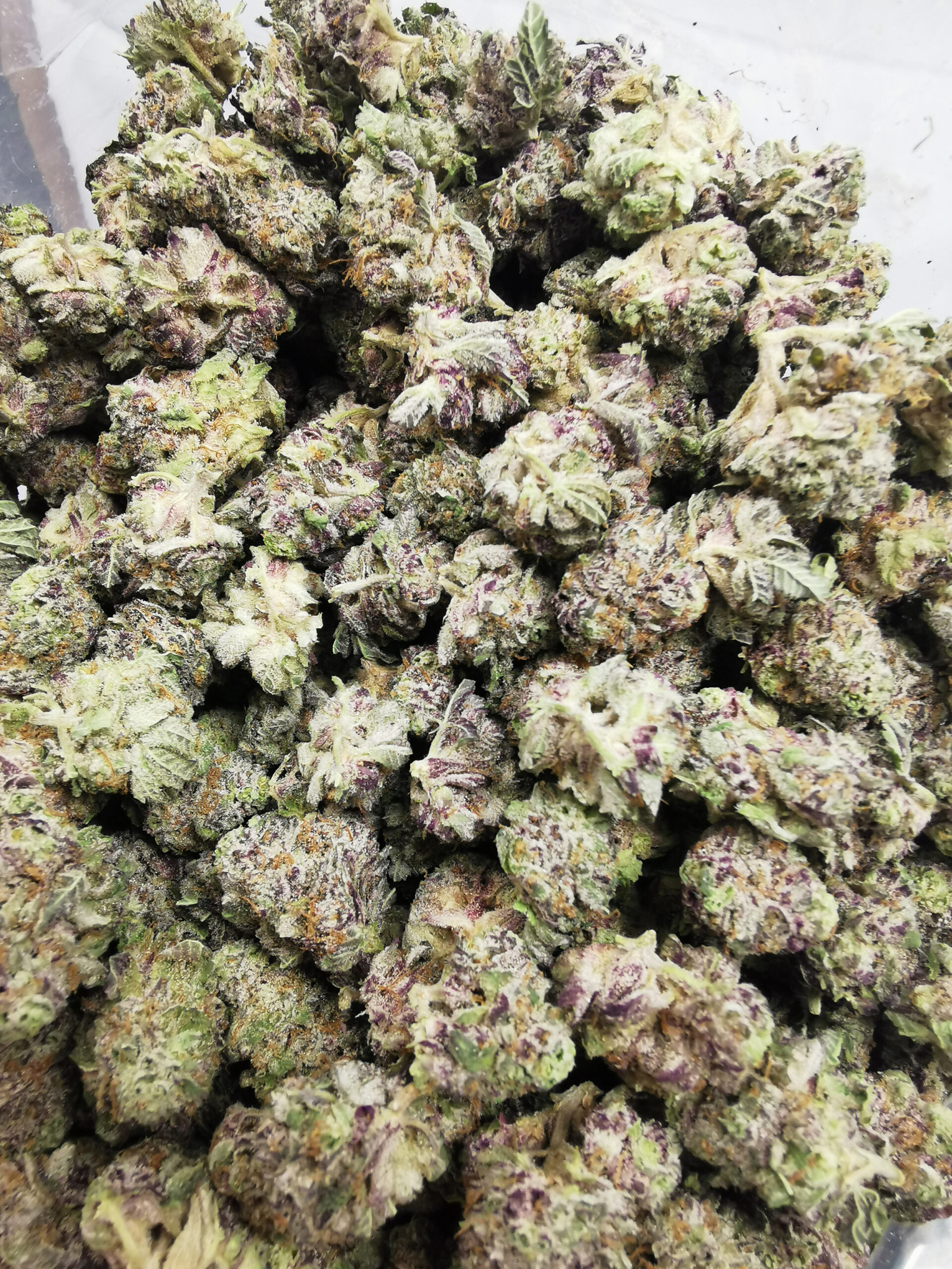 • Light green with touches of purple and frosty trichome coverage