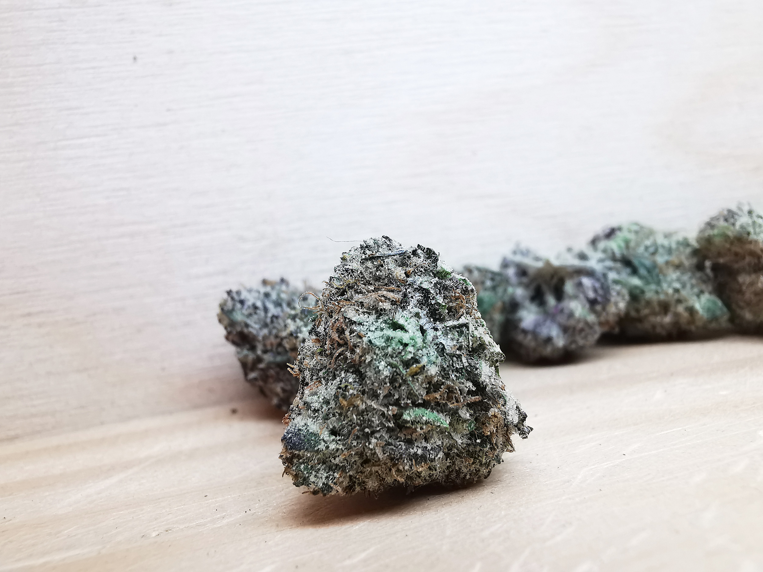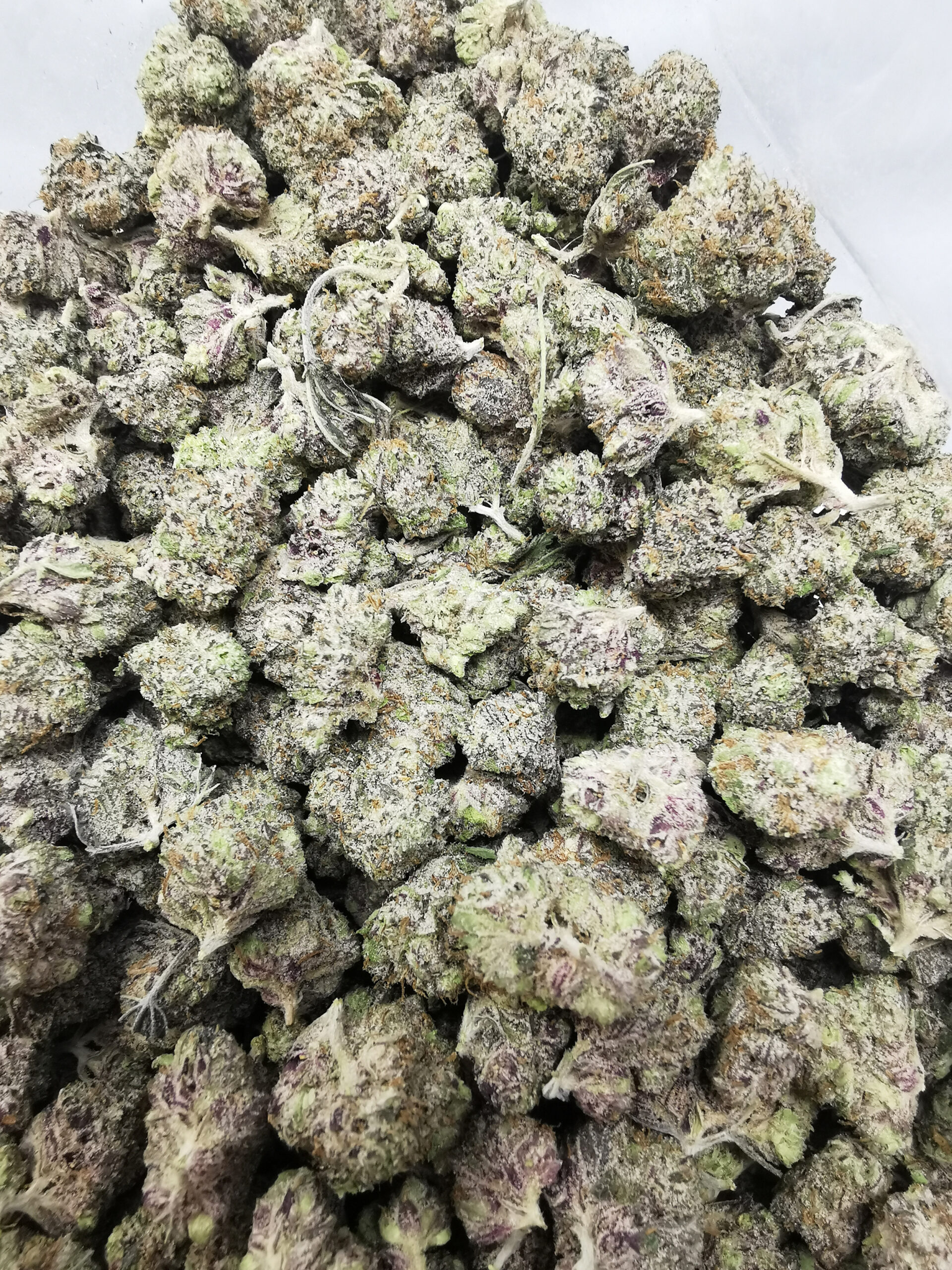 • Light green with hints of purple and frosty trichome coverage