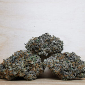 Honey Bun, also known as “Cookies Honey Bun,” is an evenly balanced hybrid strain (50% indica/50% sativa) created through crossing the delicious Gelatti X Honey B strains. Known for its tasty flavor and super arousing high, Honey Bun is the perfect bud for any hybrid lover who appreciates a little fun with their medicine. This bud has a sweet and nutty flowery lavender and creamy bread flavor with a lightly spicy exhale. The aroma is very similar, although with a skunky and gassy effect to it, too. The Honey Bun high is just as delicious, with relaxing effects that hit both mind and body with a high level of potency. You’ll feel a lifted sense hit you almost immediately, boosting the spirits and filling you with a happy sense of calm and ease. A tingle will begin to work its way throughout your body, starting in the back of the neck and head before reaching its way through your limbs and leaving you super aroused. With these effects and its high 28% average THC level, Honey Bun is often chosen to treat chronic pain, insomnia, chronic stress, depression and cramps or muscle spasms. This bud has fat heart-shaped dark olive green nugs with thin orange hairs and a coating of tiny frosty white crystal trichomes.